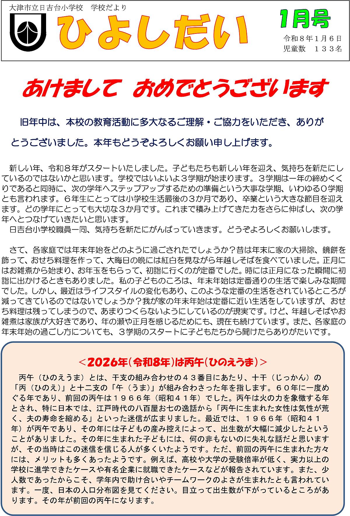 日吉台小学校 学校だより 1月号